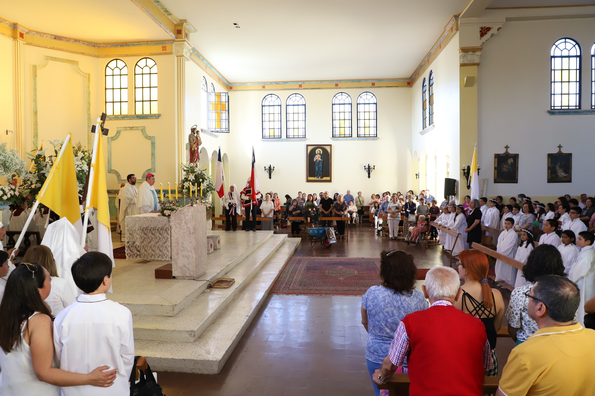 Durante la homilía Monseñor Contreras resaltó la importancia de una iglesia sinodal, una iglesia en salida. Agradeció la participación de los niños eucarísticos y la alegría con que ellos participan junto a sus padres.