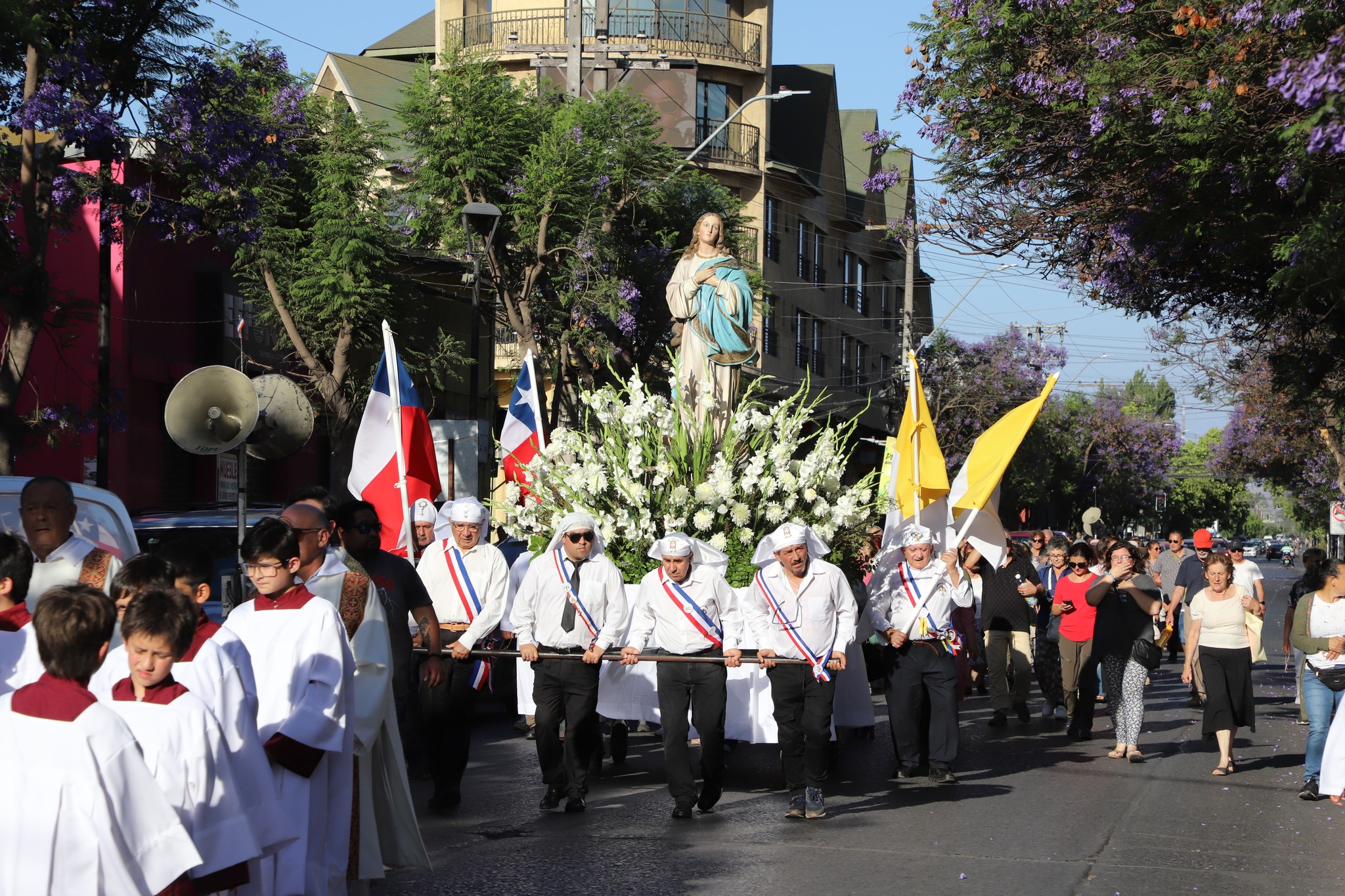 La celebración contó con la participación de 700 personas, quienes se juntaron a las 18:00 hrs para realizar una procesión hasta la misma parroquia, en donde a las 19:00 hrs se dio inicio a la celebración de la santa misa, la cual fue presidida por Monseñor Cristián Contreras, acompañado del Pbro Gustavo Aravena, párroco parroquia Inmaculada Concepción de Talagante y el Vicario Pbro Geovanni Umaña, además de los diáconos y seminaristas.